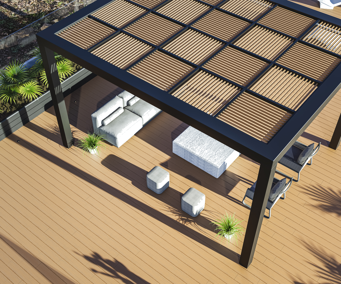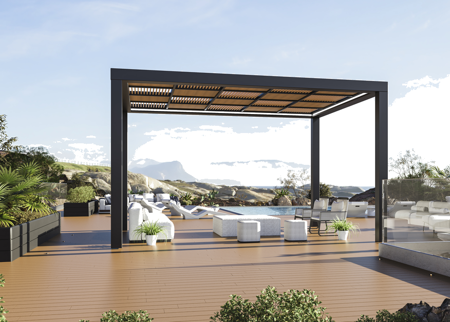 The aluminum alloy beam of the Yardcom diamond wood pergola is thickened and widened,with super bearing capacity and stronger structure.The surface is painted with Austrian tiger brand powder,ensuring fine texture,warm luster,and strong weather resistance.Combined with the natural wood texture of Yardcom Diamond wood,it brings natural beauty to your life.